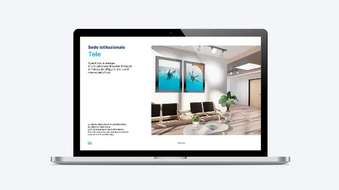 Panoramica dei supporti volti a brandizzare le sedi istituzionali e non di Wide Group.